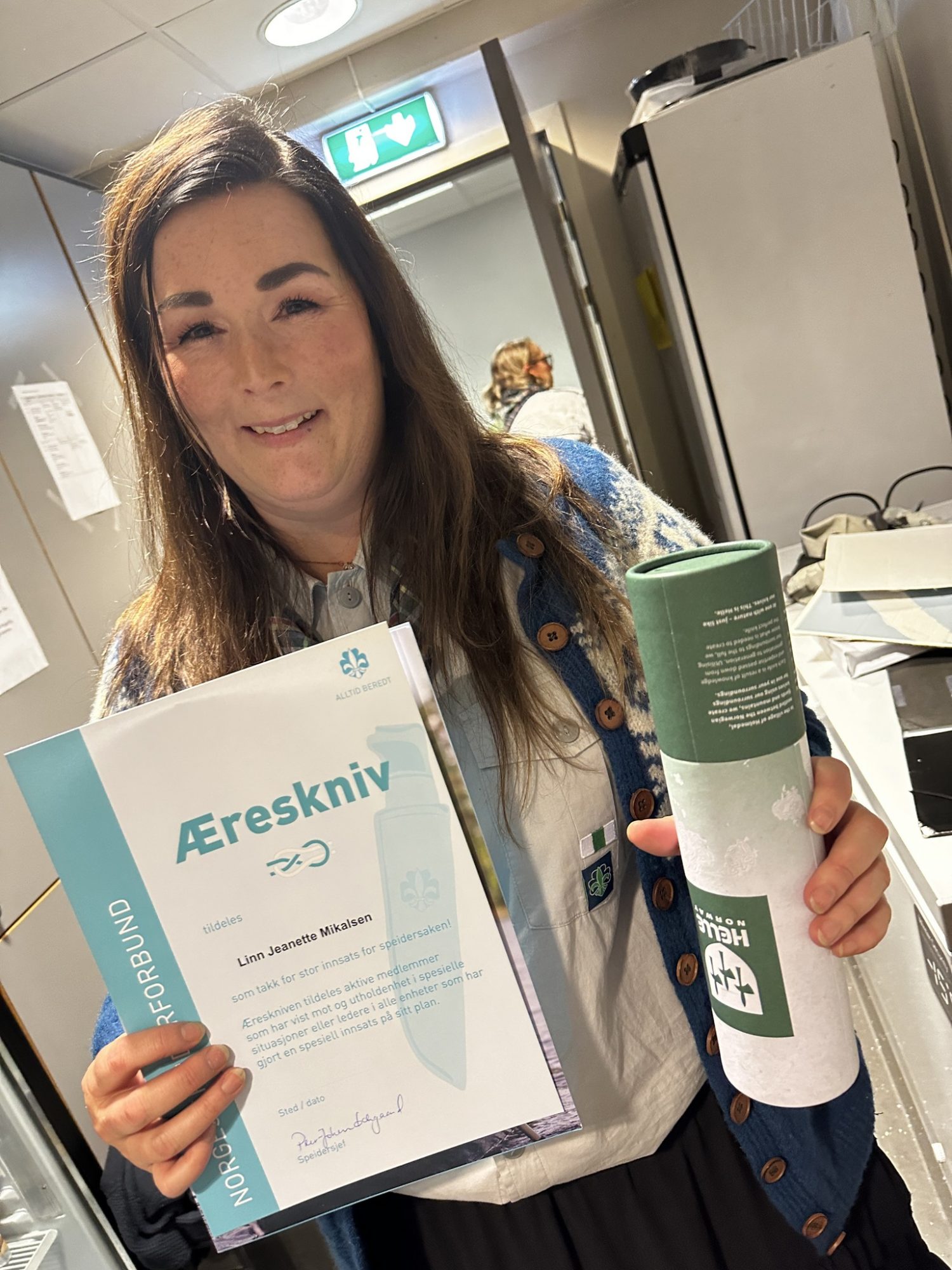 Vi gratulerer Linn Jeanette så mye med en velfortjent oppmerksomhet og takker for alt hun gjør for speiderne våre
